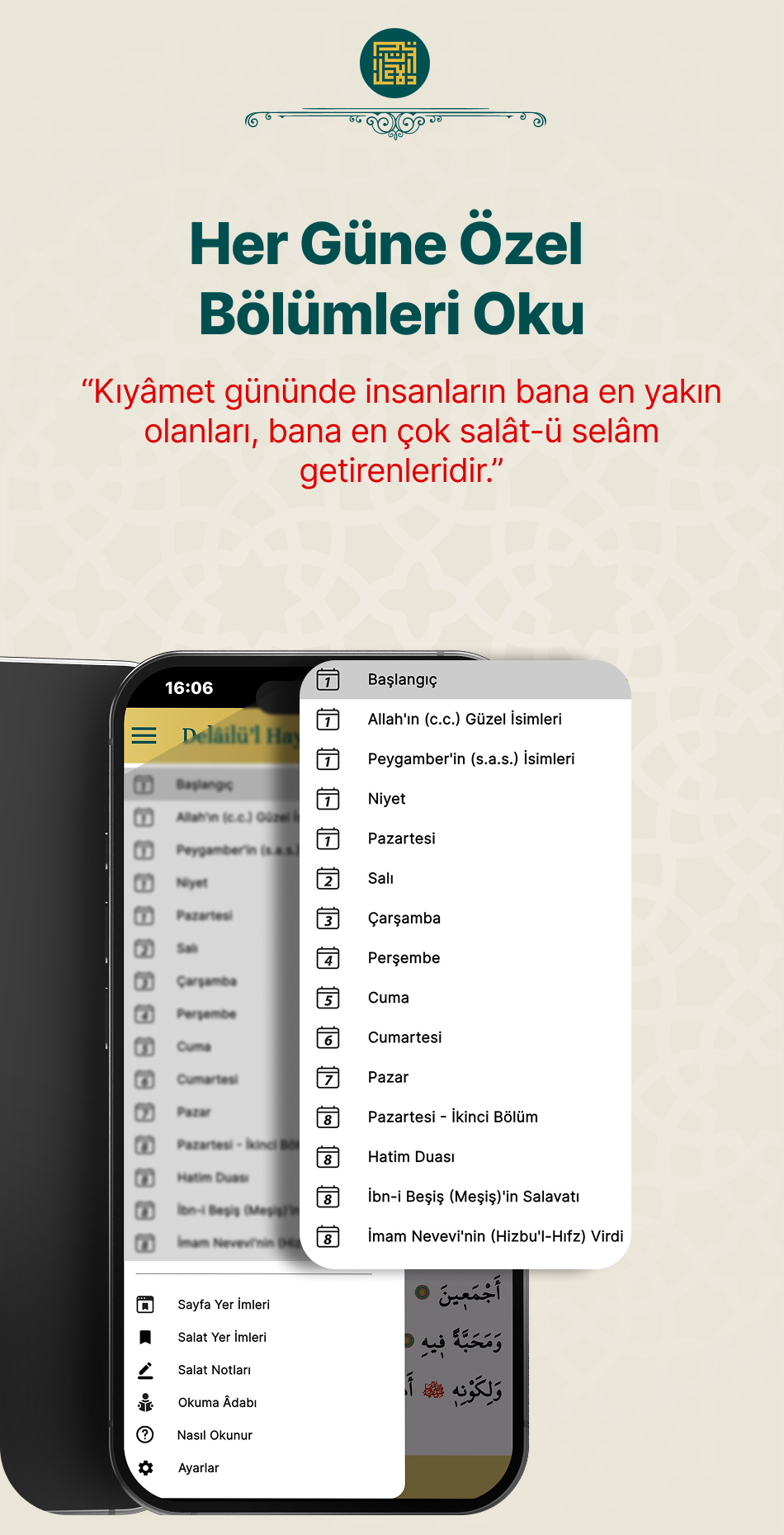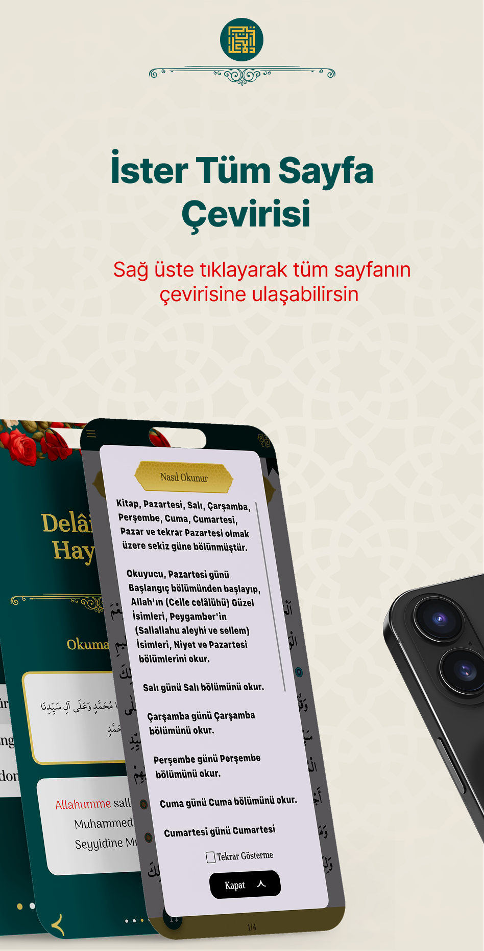 Tüm uygulama mağzalarında ücretsiz olarak sunulan  Delâilü'l-Hayrât'ı indirip kolayca kullanmaya başlayın.